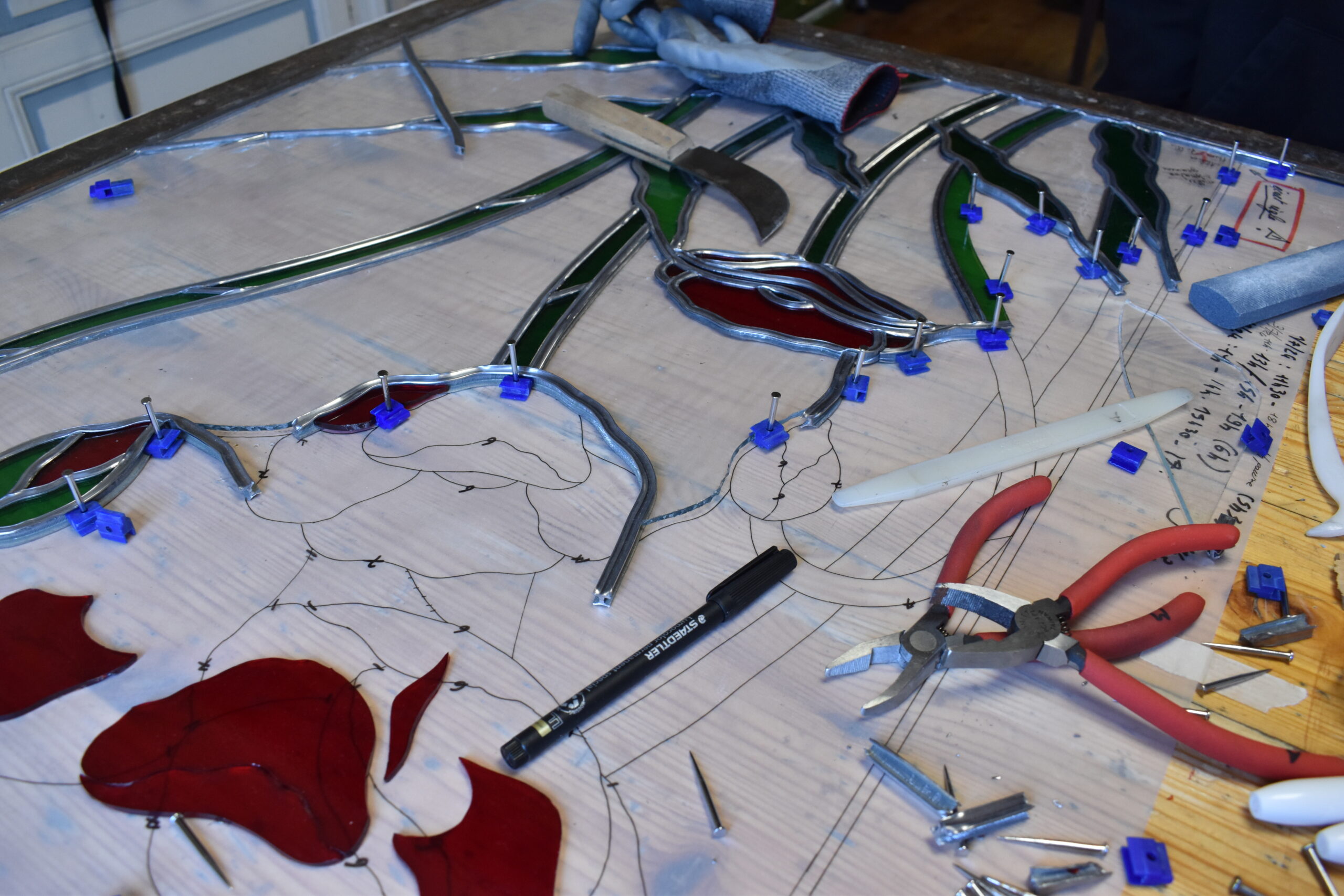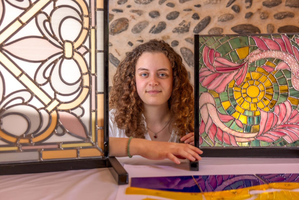 Passionnée par le dessin et la couleur, j’ai toujours rêvé d’un métier où je pourrais laisser libre cours à mon imagination. J’ai découvert le vitrail lors d’un stage en 2018, au cœur d’un atelier de création et de restauration. Cette expérience enrichissante m’a immédiatement captivée et a marqué le début de ma carrière dans ce domaine.
